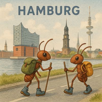 Australien – ein Ziel, das die Ameisen nie erreichen. Sie kehren um, doch Hans ist da. Statt triumphal zu wirken, nimmt er es gelassen: Er raucht, lacht und genießt den Moment. Der Text macht klar, dass der Wert nicht im Ankommen liegt, sondern im Versuch. Hans spürt, dass Reisen kein Wettbewerb ist, sondern eine Haltung: ausprobieren, weitermachen, weitergehen. Die Szene ist heiter und entspannt – fast wie ein Urlaubsmoment nach all den Strapazen.
