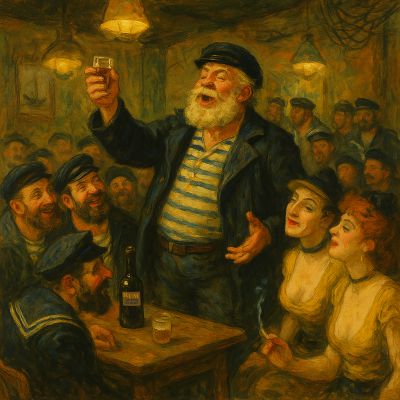Musik: Ein traditioneller Matrosensang. Mischung aus Seemannslied und Shanty, getragen von Chor und Gemeinschaft.